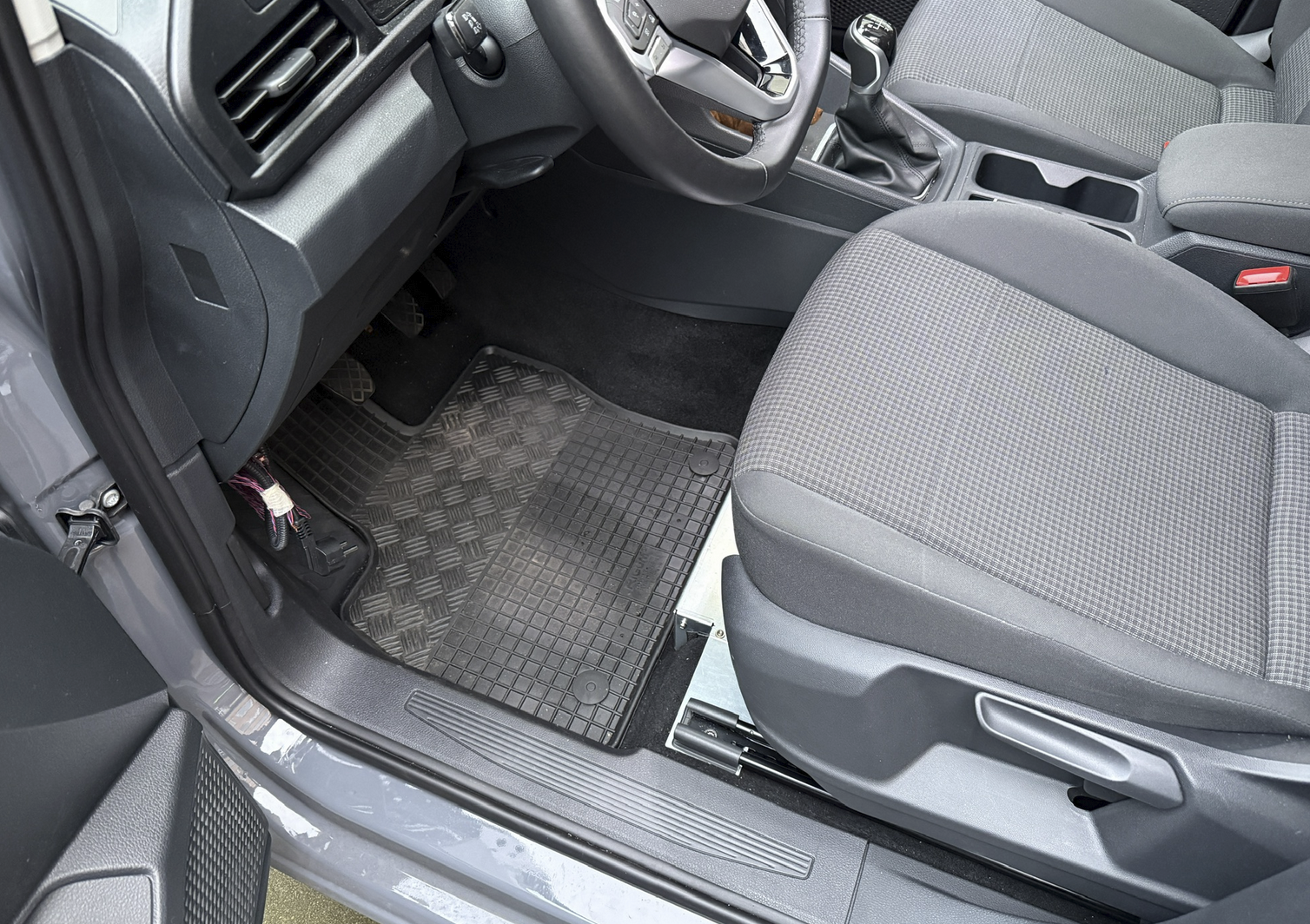 Verbaut wird der Ladebooster unter dem Fahrersitz (passt in einen Metall-Halter unter den Sitz) in der Nähe der dort endenden VW-Zweitbatterievorbereitung: